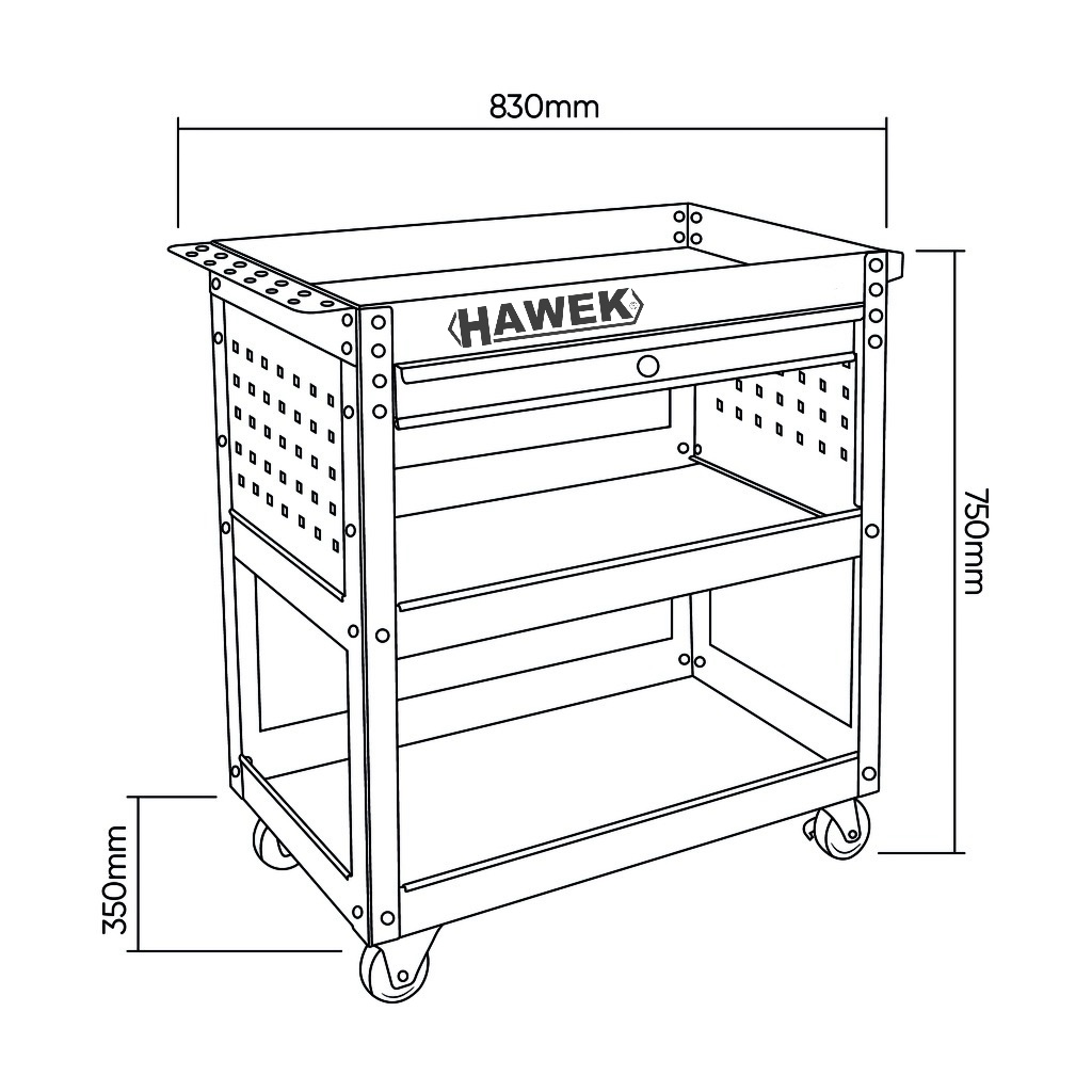 Καρότσι Εργαλείων HAWEK με 3 Ράφια και 1 Συρτάρι HW-1191