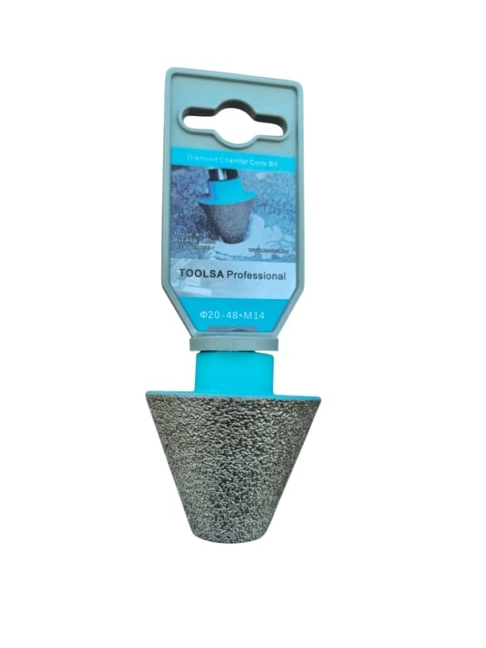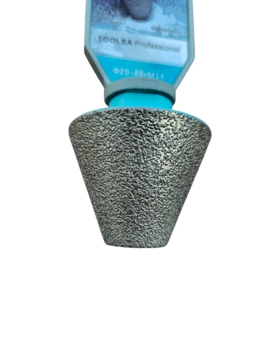Η διαμαντένια κωνική φρέζα χρησιμοποιείται για την αύξηση της διαμέτρου οπών σε κεραμικό γρανίτη, γρανίτη, μάρμαρο και σκληρά κεραμικά μέσω λείανσης της πλευρικής επιφάνειας εργασίας. Χάρη στο κωνικό της σχήμα, αφαιρεί εύκολα τις φάσες (λοξοτομές) από τις ανώμαλες άκρες των οπών. Μειώνει την τάση και τον κίνδυνο ρωγμών σε πλακίδια μεγάλων διαστάσεων μετά τη διάτρηση. Χρησιμοποιείται για την αφαίρεση φάσας, την εξομάλυνση και τη λείανση των άκρων των οπών. Επιπλέον, χάρη σε αυτήν, μπορείτε να δημιουργήσετε μια σχεδόν τέλεια οπή χωρίς σπασίματα.