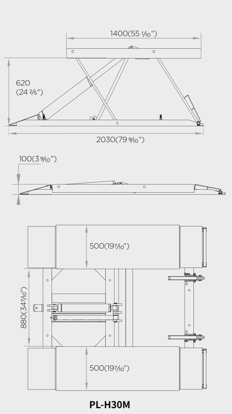 • Το συνολικό μήκος με τις ράμπες – 2030 mm – επιτρέπει εύκολη εργασία και σε μακρύτερα οχήματα.