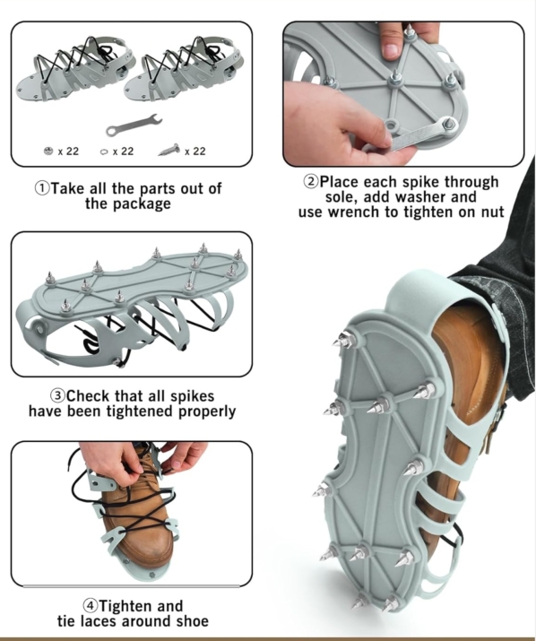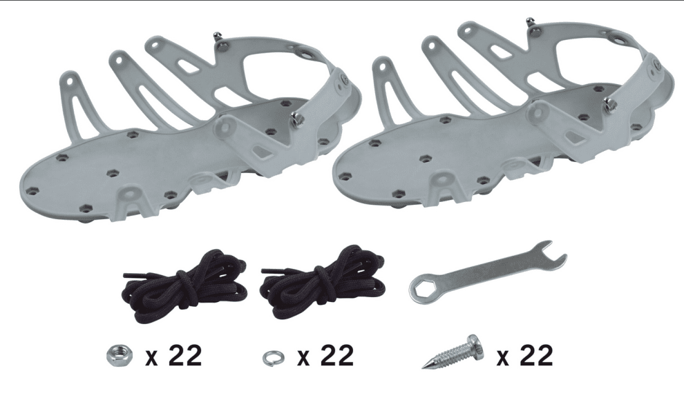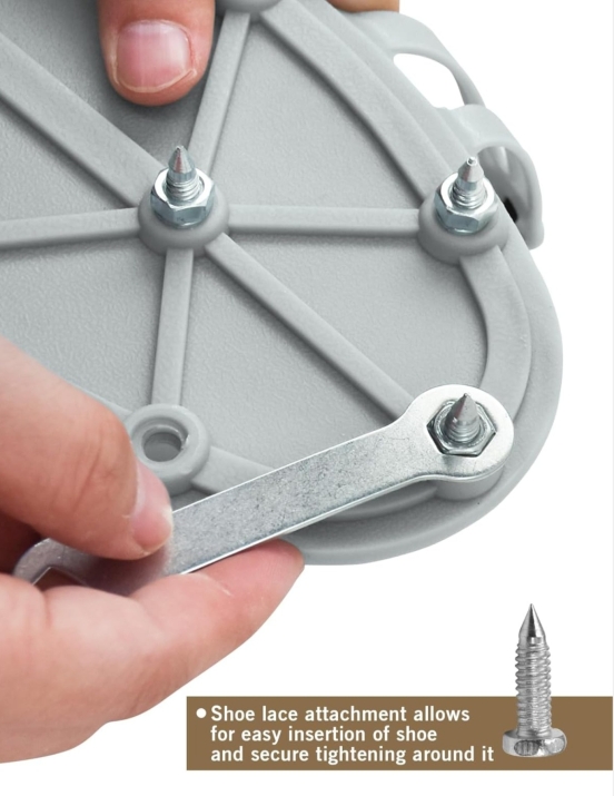 Εξειδικευμένα παπούτσια για ασφαλή και αποτελεσματική μετακίνηση πάνω σε υγρά αυτοεπιπεδούμενα δάπεδα. Τα καρφιά αποτρέπουν τις παραμορφώσεις της φρεσκοχυμένης επιφάνειας και βοηθούν στην απομάκρυνση των φυσαλίδων αέρα, βελτιώνοντας το τελικό αποτέλεσμα. Κατάλληλα για κάθε μέγεθος ποδιού χάρη στους ρυθμιζόμενους ιμάντες.
