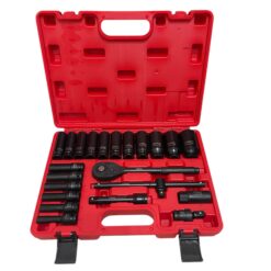 Το σετ εργαλείων Stahlmayer 23 τεμαχίων είναι ένα σετ υψηλής ποιότητας, σχεδιασμένο για επαγγελματική και ερασιτεχνική χρήση. Είναι κατασκευασμένο από ανθεκτικό κράμα χρωμίου-μολυβδαινίου (CR-MO), το οποίο εγγυάται υψηλή αντοχή στο φορτίο, στη φθορά και μεγάλη διάρκεια ζωής. Τα μακριά κρουστικά καρυδάκια είναι κατάλληλα για εργασία με μπουλονόκλειδο (αερόκλειδο) και επιτρέπουν την πρόσβαση σε βαθύτερα τοποθετημένα μπουλόνια και παξιμάδια.