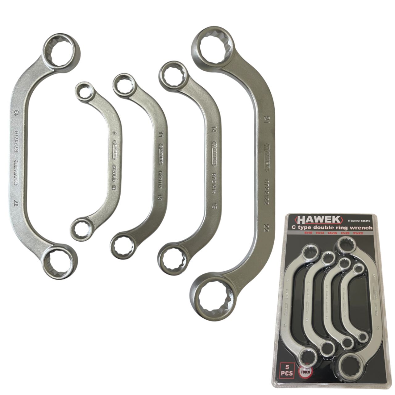 HAWEK 50511C – Επαγγελματικό σετ κυρτών διπλών κλειδιών 5 τεμαχίων (8–22 mm) 🔧