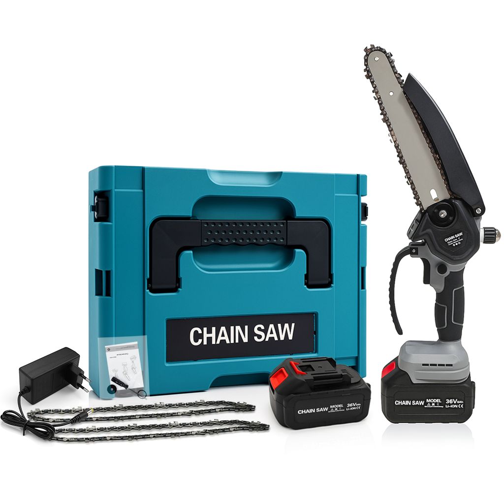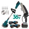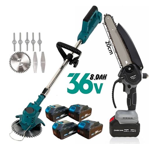 Σετ Επαναφορτιζόμενων Εργαλείων Κήπου – Χορτοκοπτικό & Αλυσοπρίονο 36V με 4 Μπαταρίες 8Ah