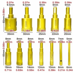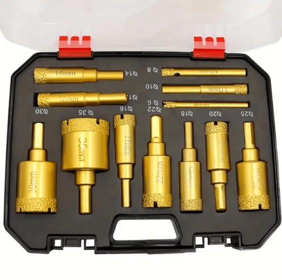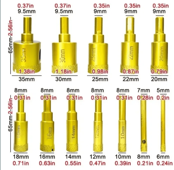 Σετ 12 ποτηροτρύπανων για ξηρή διάτρηση όλων των ειδών από φαγιάνς, τερακότα, τεχνική πέτρα, γρανιτοπλακάκι (υπερσκληρό) και άλλα.