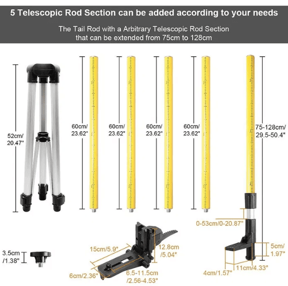 Το τρίποδο LP36 3,7 m έχει σχεδιαστεί για να λειτουργεί με τον γραμμικό ή περιστροφικό χωροβάτη λέιζερ, βοηθώντας σας στη χωροστάθμηση κατασκευών σε επιφάνειες εργασίας και αγροτεμάχια. Η πολυλειτουργική ράβδος στήριξης Huepar LP36 είναι κατασκευασμένη από αλουμίνιο με επίστρωση πολυουρεθάνης για ανθεκτικότητα.