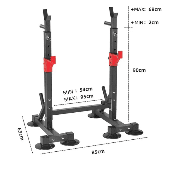 Κατάλληλη τόσο για squat όσο και για ασκήσεις με πάγκο. Απλώς τοποθετήστε έναν πάγκο κάτω από τη βάση και μπορείτε να εκτελέσετε μεγάλη ποικιλία ασκήσεων.