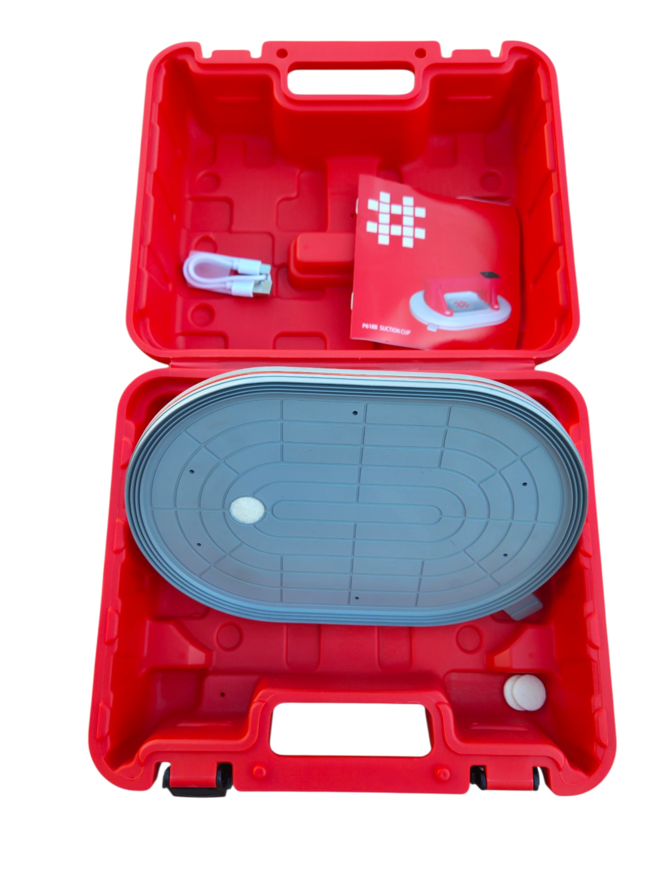 Η επαγγελματική βεντούζα SHIJING P618B διαθέτει μεγάλη επιφάνεια αναρρόφησης από λάστιχο διαστάσεων 247 x 167 mm, προσφέροντας εξαιρετική σταθερότητα και ισχυρή απορρόφηση ακόμη και σε μεγάλες ή δύσκολες επιφάνειες.